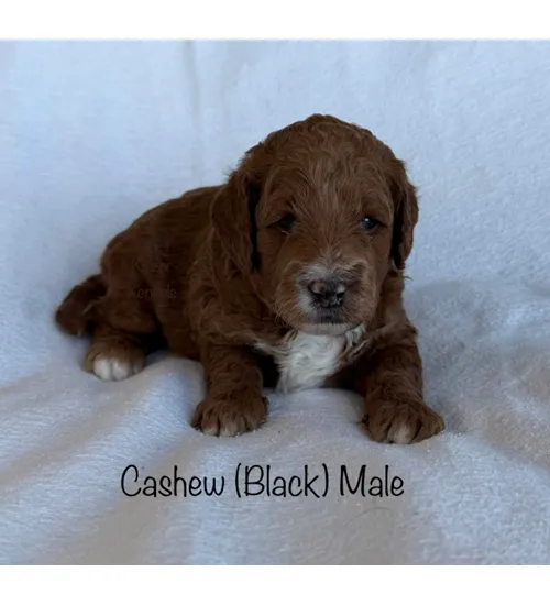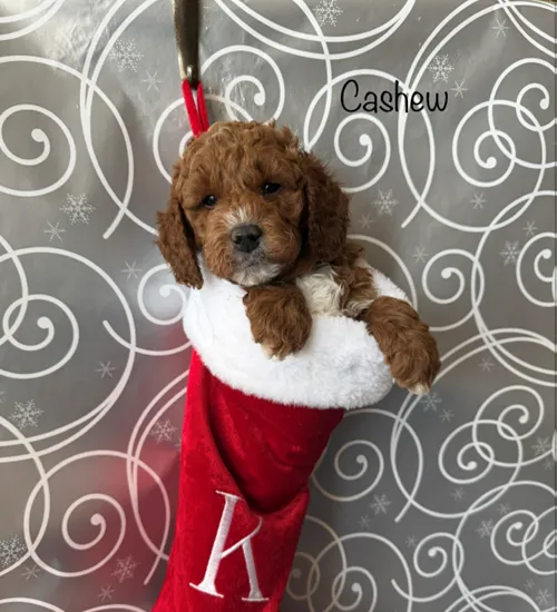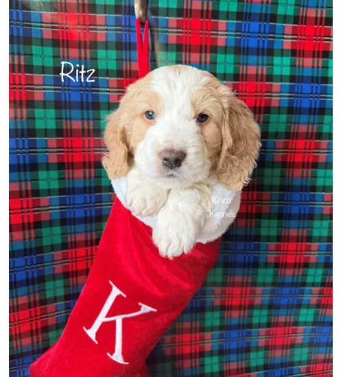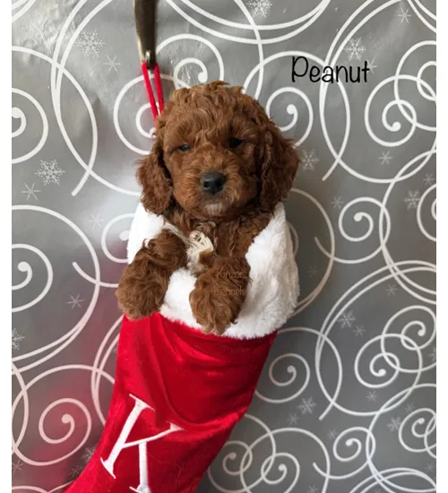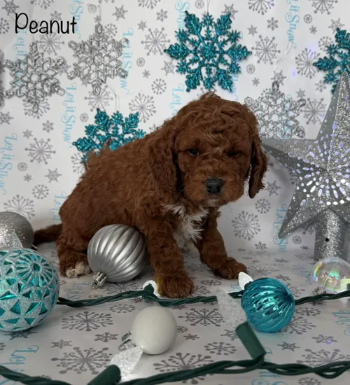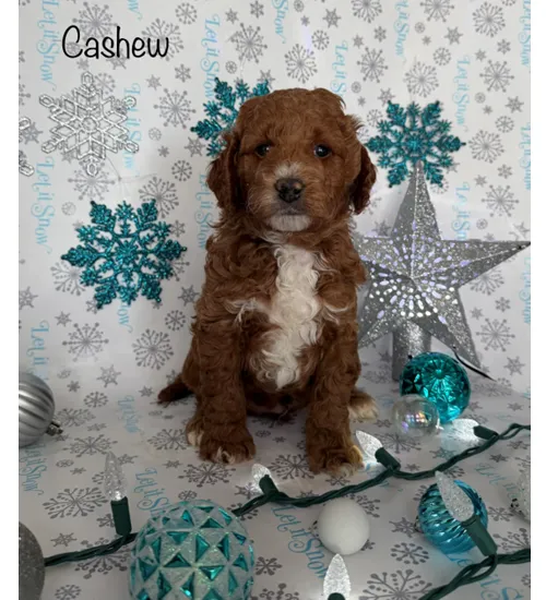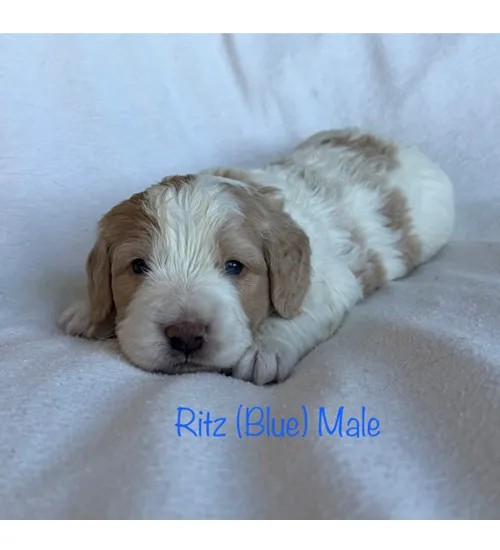 The "Cracker" Litter was born on Wednesday, November 12, 2025. There is 1 male puppy, and he is a red parti.