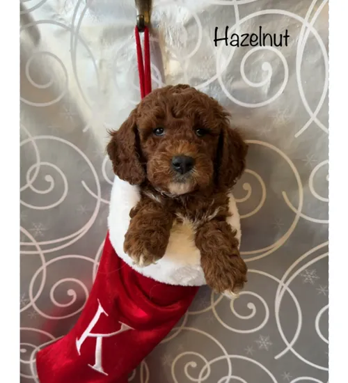 The "Nut" Litter was born on Wednesday, November 12th, 2025. There are 4 females and 2 males. Their coats are red abstract.