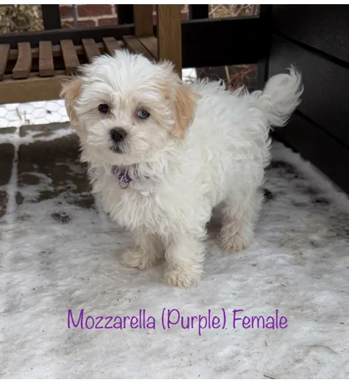 The "Cheese" Litter was born on Sunday, November 2nd, 2025. There are 3 females and 2 males. Their coats are cream parti and merle parti.